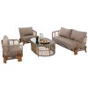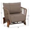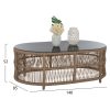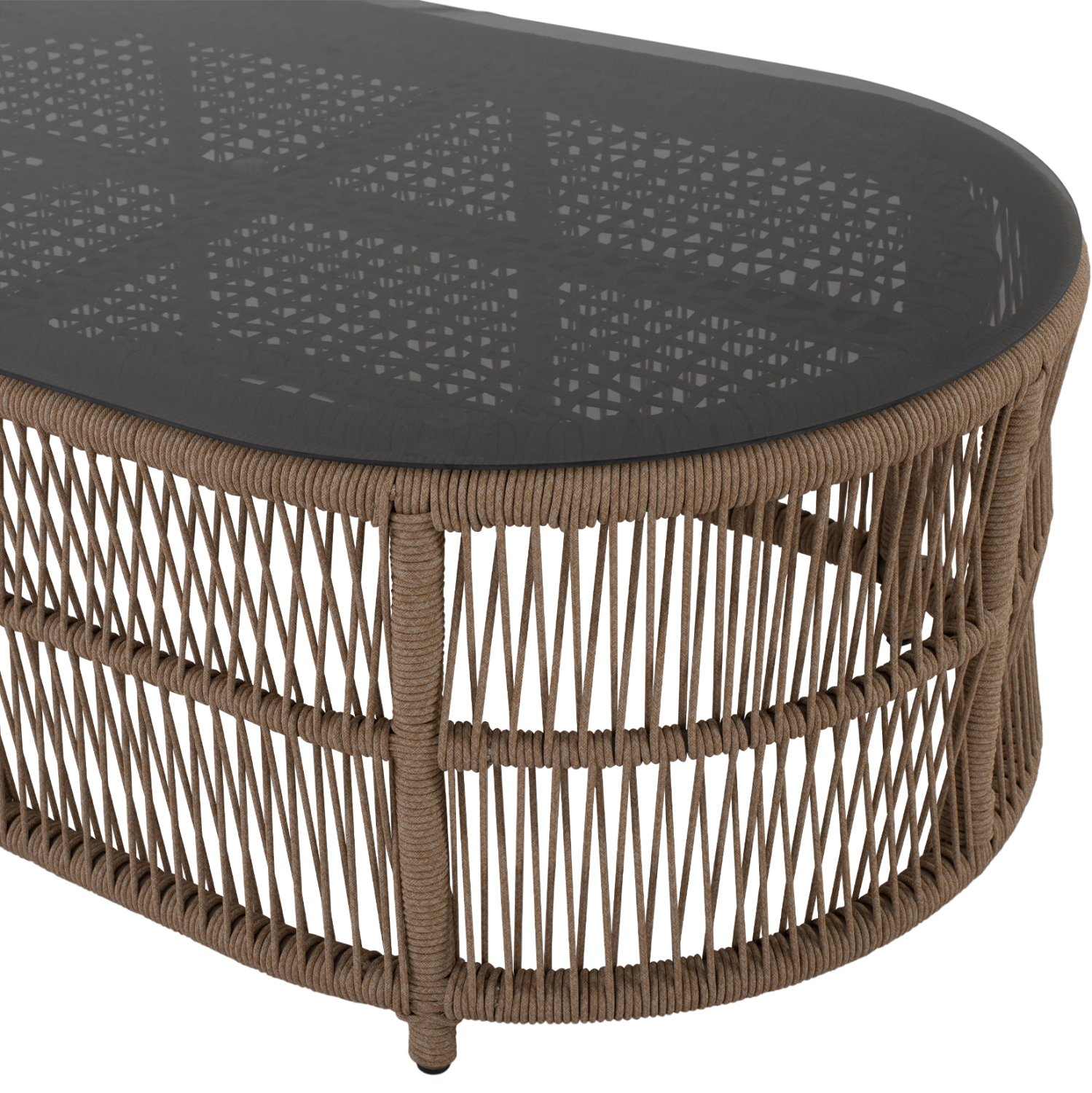 ΗΜ5884.01—Σας παρουσιάζουμε το εντυπωσιακό, νέο και χειροποίητο σετ εξωτερικού χώρου με κυρίαρχο χρώμα το ΜΠΕΖ. Αποτελείται από ένα τραπεζάκι, 2 πολυθρόνες και έναν 3-θέσιο καναπέ. Ένα σετ που θα το λατρέψετε με την πρώτη ματιά. Το όμορφο τραπέζι έχει σχήμα οβάλ και έχει επιφάνεια από γυαλί ασφαλείας, ενώ η βάση του είναι ολόκληρη με σχοινί δεμένο επάνω στον αλουμινένιο σκελετό του. Οι πολυθρόνες είναι εξίσου εντυπωσιακές. Τα πόδια τους είναι 4 κομμάτια από μασίφ ξύλο ΙΡΟΚΟ ενώ το σχοινί επάνω στον αλουμινένιο σκελετό προσδίδει ομοιομορφία με το τραπέζι. Το κάθισμά τους είναι φαρδύ ενώ σε συνδυασμό με τα αναπαυτικά μαξιλάρια τόσο στο κάθισμα όσο και στην πλάτη προσφέρουν ξεκούραση και άνεση. Ο 3-θέσιος καναπές σε παρόμοιο design είναι και αυτός εντυπωσιακός και συμπληρώνει το σετ με τον καλύτερο δυνατό τρόπο. Τα μαξιλάρια σε όλο το σετ είναι επενδυμένα με ποιοτικό ύφασμα σε ΜΠΕΖ χρώμα και διαθέτουν γέμισμα με μέτριας σκληρότητας αφρώδη υλικά για την μεγαλύτερη δυνατή άνεση. Τι άλλο να ζητήσει κανείς για να αναβαθμίσει τον κήπο, το μπαλκόνι ή την αυλή του;