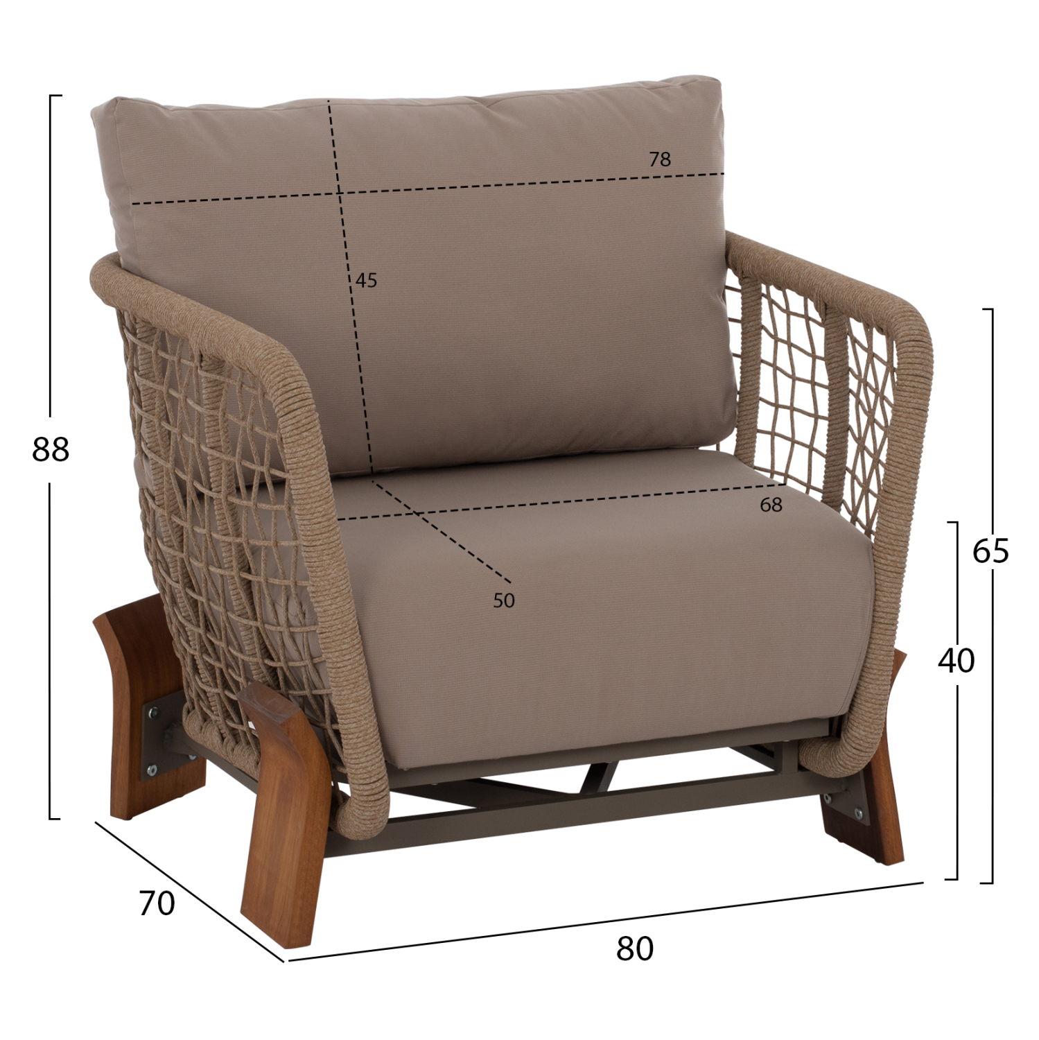 Τέλος, η επένδυση σε όλο το σετ έχει γίνει με σχοινί υψηλής ποιότητας αριστοτεχνικά πλεγμένο επάνω στους αλουμινένιους σκελετούς.