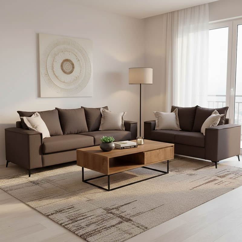 Σετ σαλονιού 2τεμ Verona pakoworld ανθρακί ύφασμα με μαξιλάρια σε μπεζ απόχρωση