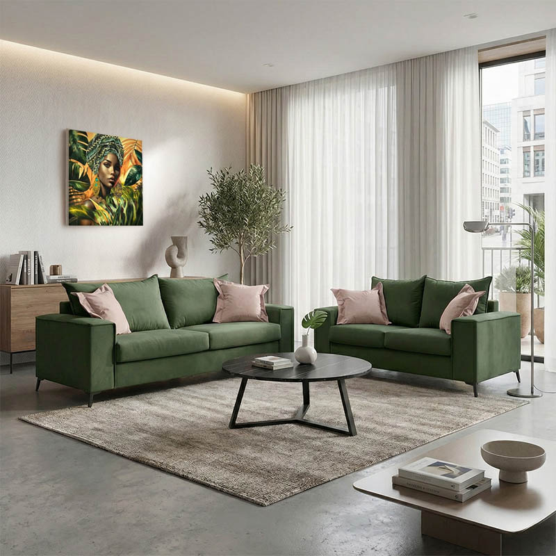 Σετ σαλονιού 2τεμ Verona pakoworld κυπαρισσί ύφασμα με μαξιλάρια σε κρεμ απόχρωση