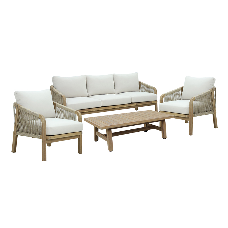 Σετ σαλονιού 4τμχ Malibu I pakoworld μασίφ ξύλο ακακίας-μπεζ ύφασμα