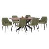 HΜ11912—Σετ τραπεζαρίας με τραπέζι, 4 καρέκλες και 2 πολυθρόνες. Το επιβλητικό ορθογώνιο τραπέζι, που αποτελεί μια από τις καινούργιες προσθήκες στην γκάμα μας, διαθέτει επιφάνεια από MDF με καπλαμά καρυδιάς σε χρώμα ΚΑΡΥΔΙ σε στυλ ρουστίκ. Η επιφάνεια αυτή στηρίζεται σε μια μαύρη διάταξη με μεταλλικά διπλοχιαστί πόδια. Οι καρέκλες και οι πολυθρόνες με αναπαυτικό σχεδιασμό και ζεστό ύφασμα TEDDY, είναι σε ΦΥΣΤΙΚΙ απόχρωση, ενώ τα πόδια τους είναι μαύρα. Το αποτέλεσμα είναι ένας αχτύπητος συνδυασμός για την τραπεζαρία σας.