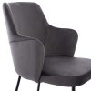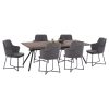 HΜ10638—Σετ τραπεζαρίας με τραπέζι και 6 πολυθρόνες. Το τραπέζι είναι μεγάλο, μοντέρνο κι επιβλητικό σε χρώμα καρυδί. Είναι κατασκευασμένο από «φαλτσοκομμένη» επιφάνεια MDF με καπλαμά από ξύλο καρυδιάς σε ρουστίκ στυλ και τα πόδια είναι μεταλλικά σε διάταξη πλαγιαστού Λ. Οι πολυθρόνες είναι ΓΚΡΙ σε μοντέρνα γραμμή με μεταλλικά χιαστί πόδια. Το χαρακτηριστικό αυτής της πολυθρόνας είναι ότι είναι ολόκληρη επενδυμένη με βελούδινο ύφασμα και το εξωτερικό της μεσαίου ύψους πλάτης φέρει γεωμετρικές ραφές στην βελούδινη επένδυση, πράγμα που επιτείνει τον ιδιαίτερο χαρακτήρα αυτής της πολυθρόνας.