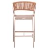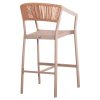 Η πλάτη του σκαμπό είναι επενδυμένη με πολυεστερικό RATTAN. Στα περισσότερα έπιπλα κήπου και γενικά σε έπιπλα για εξωτερικούς χώρους χρησιμοποιείται συνθετικό υλικό από PVC, δηλαδή τεχνητές ίνες υψηλής ποιότητας. Αυτό δίνει στην κατασκευή εξαιρετική αντοχή και ανθεκτικότητα σε ακραίες συνθήκες ζέστης ή κρύου.