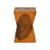 Αυτό το μοναδικό σκαμπό Clepsydra, με τον ιδιαίτερο σχεδιασμό σε σχήμα κλεψύδρας, είναι κατασκευασμένο από μασίφ ξύλο suar. Κάθε κομμάτι είναι χειροποίητο και φέρει τις φυσικές αποχρώσεις και τη ζεστασιά του ξύλου, κάνοντας το ιδανικό για να προσθέσει μια πινελιά πολυτέλειας και φυσικής κομψότητας στον χώρο σας. Mπορεί να χρησιμοποιηθεί ως σκαμπό, βοηθητικό τραπεζάκι ή διακοσμητικό αντικείμενο.