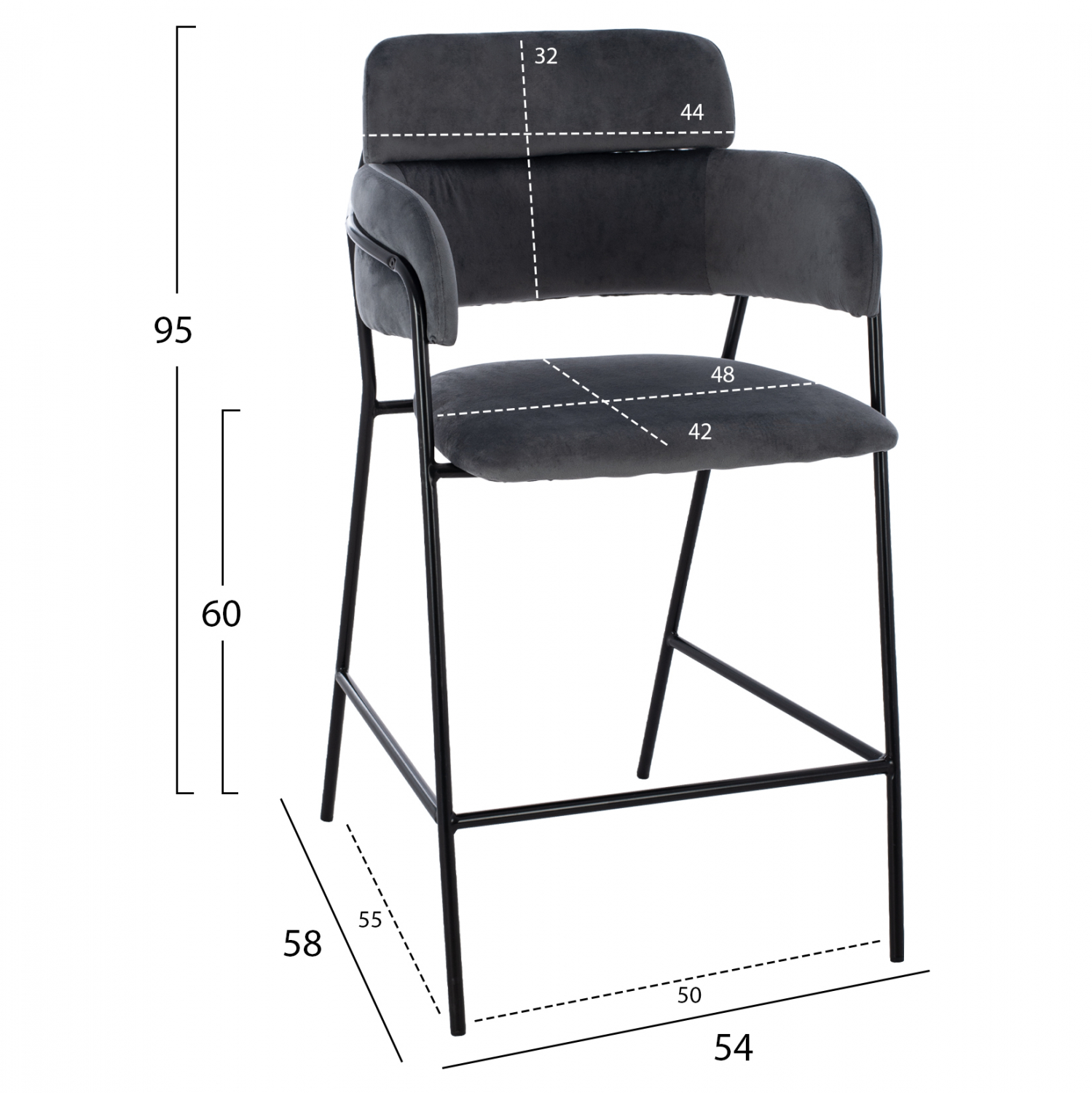 ΣΚΑΜΠΟ ΜΕΣΑΙΟΥ ΥΨΟΥΣ HM8735.01 KELSO ΒΕΛΟΥΔΟ ΓΚΡΙ ΜΕ ΜΕΤΑΛΛΙΚΟ ΣΚΕΛΕΤΟ 54x58x95Υ εκ.
