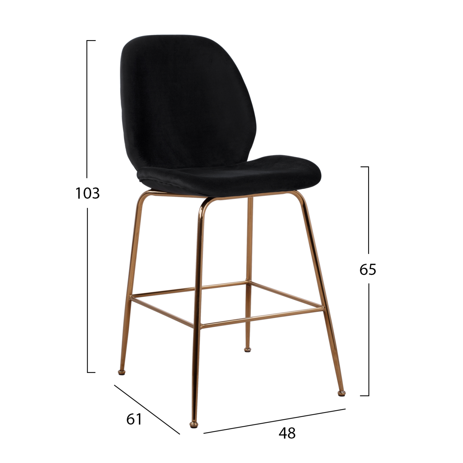 ΣΚΑΜΠΟ ΜΕΣΑΙΟΥ ΥΨΟΥΣ NORA HM8524.04 ΒΕΛΟΥΔΟ ΜΑΥΡΟ & ΧΡΥΣΟ ΜΕΤΑΛΛΙΚΟ ΣΚΕΛΕΤΟ 48x61x103Υ εκ.