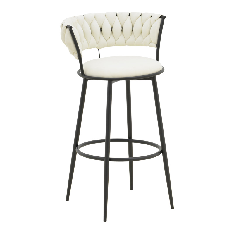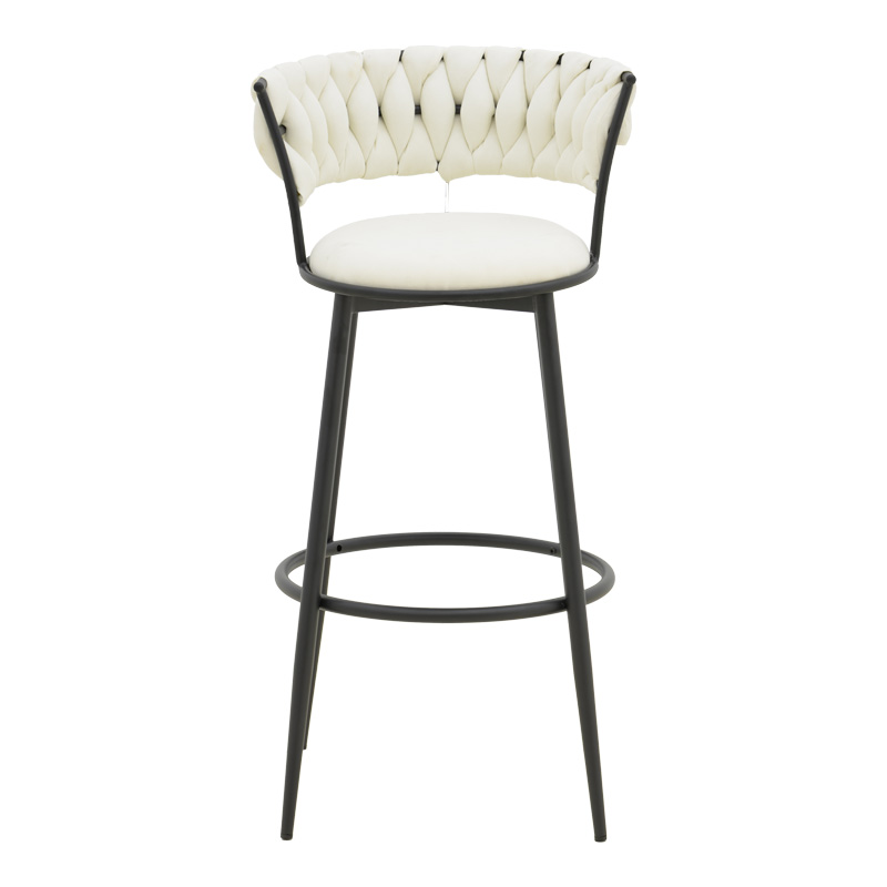 Σκαμπό μπαρ Alkia I pakoworld ύφασμα σε εκρού απόχρωση- πόδι μαύρο μέταλλο 50x56x95εκ