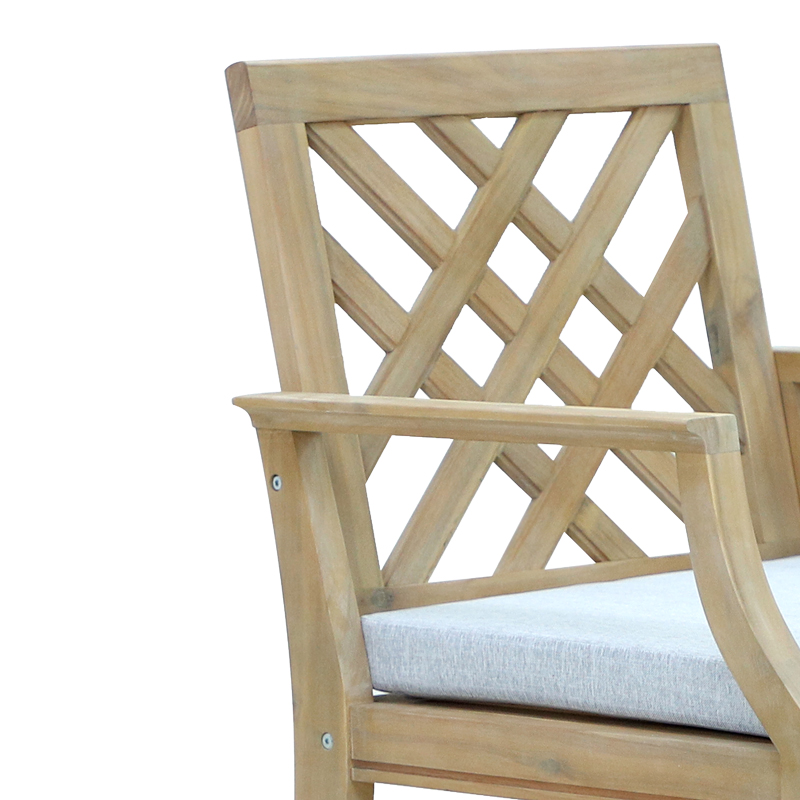 - Σκελετός κατασκευασμένος από ενισχυμένο ξύλο ακακίας. Το ξύλο ακακίας είναι σκληρό και ανθεκτικό στη φθορά, κάνοντάς το κατάλληλο για επίπλωση και χρήση σε εξωτερικούς χώρους. Είναι γνωστό για την ανθεκτικότητά του, την ομορφιά που προσφέρει το φυσικό του χρώμα και την αντοχή του. Χρησιμοποιείται ευρέως στην κατασκευή επίπλων, δαπέδων, επιφανειών εργασίας και εξωτερικών δομών όπως κήποι και μπαλκόνια.