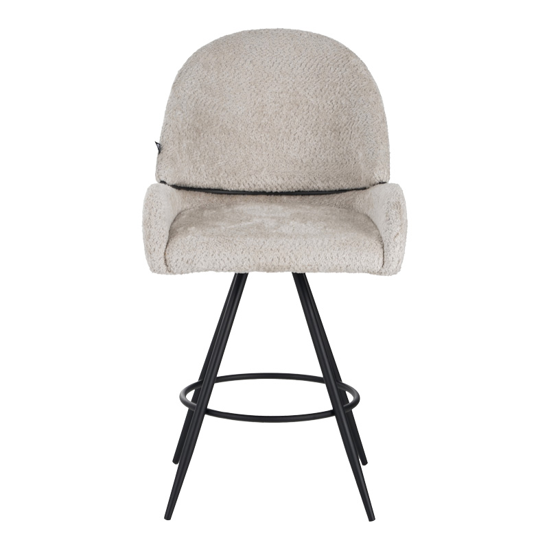 Σκαμπό μπαρ περιστρεφόμενο Morea pakoworld μπουκλέ ύφασμα σε μπεζ απόχρωση με μαύρα μεταλλικά πόδια