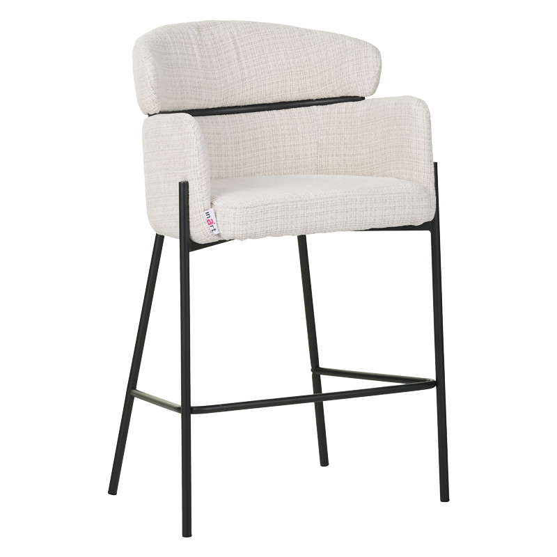 Σκαμπό μπαρ Tolerse Inart μπεζ ύφασμα-πόδι μαύρο μέταλλο