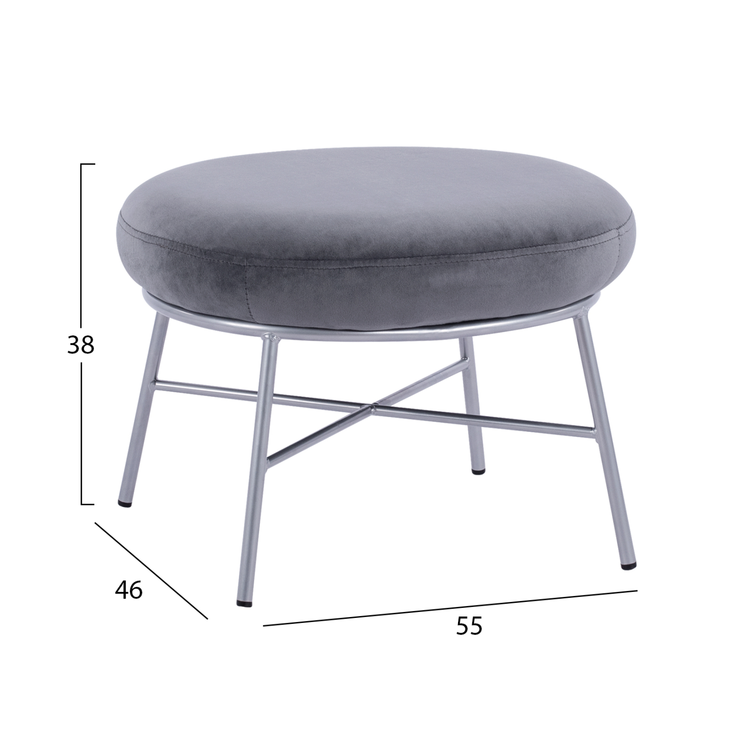 ΣΚΑΜΠΟ ΥΠΟΠΟΔΙΟ TRUDI HM8640.01 ΑΠΟ ΓΚΡΙ ΒΕΛΟΥΔΟ ΜΕ ΑΣΗΜΙ ΒΑΣΗ 55x46x38Υ εκ.