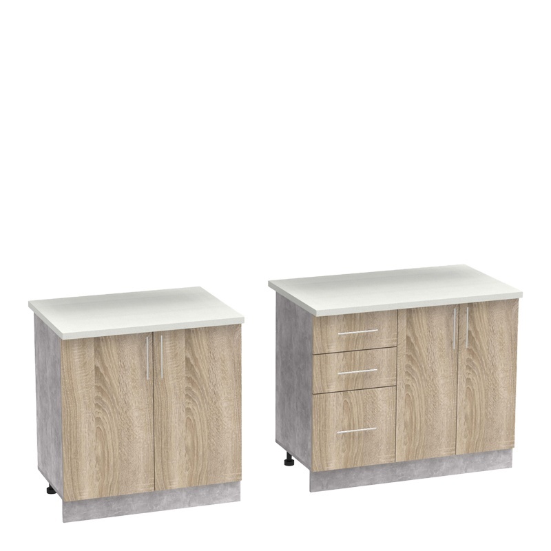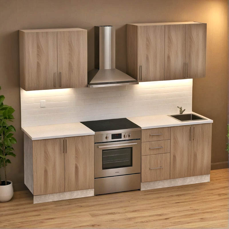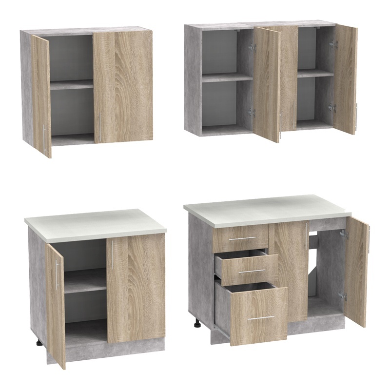 Σύνθεση κουζίνας Festa V pakoworld μελαμίνη σε sonoma απόχρωση και πάγκο σε ανοιχτό γκρι 180x60x85εκ