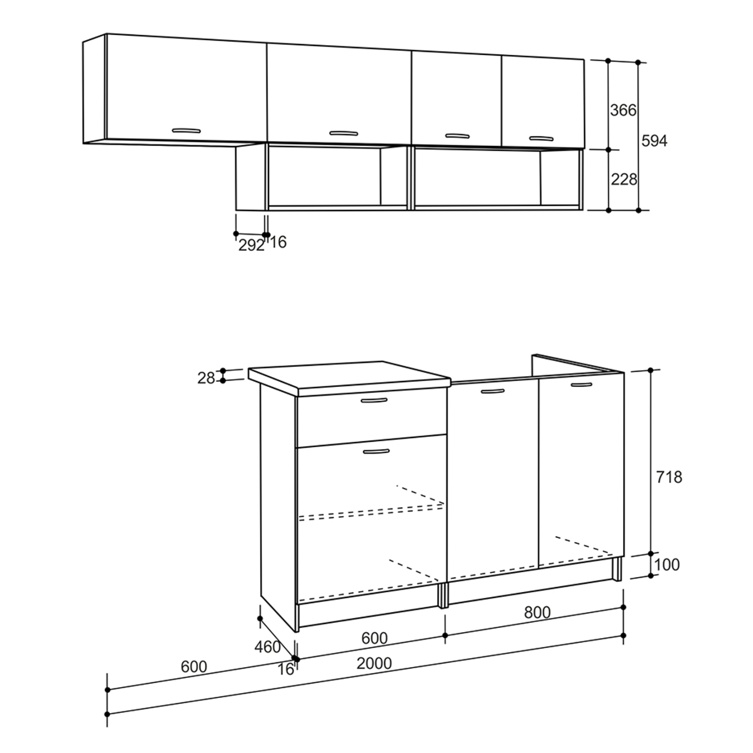ΣΥΝΘΕΣΗ ΚΟΥΖΙΝΑΣ RODNEY ΜΕΛΑΜΙΝΗ ΓΚΡΙ ΜΕ ΠΑΓΚΟ ΛΕΥΚΟ HM2442.10 200×46-29,2εκ.