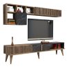 Το ΗΜ9438.03 είναι ένα μοντέρνο και λειτουργικό έπιπλο τηλεόρασης, που θα ομορφύνει το σαλόνι σας! Είναι μακρύ και διαθέτει 2 ντουλάπια με ενιαίο χώρο στην αριστερή πλευρά της κύριας μονάδας δαπέδου που ανοίγουν προς τα κάτω και έναν ανοιχτό χώρο αποθήκευσης στην δεξιά πλευρά. Η σύνθεση ολοκληρώνεται με επιτοίχια ράφια και ντουλάπια που δίνουν άπλετο χώρο είτε για την διακόσμηση σας, είτε για αποθήκευση αντικειμένων. Διαθέτει 4 πόδια στην μονάδα δαπέδου και ένα επιπλέον στο κέντρο για μεγαλύτερη στιβαρότητα, ενώ το έπιπλο έρχεται σε μια πανέμορφη διχρωμία καρυδί με ΜΑΥΡΟ ΜΑΡΜΑΡΟ, και οι διαστάσεις του είναι κατάλληλες για όλες τις τηλεοράσεις εάν θέλετε η τηλεόρασή σας να στηρίζεται σε βάση. Πρόκειται για μια κομψή και ολοκληρωμένη πρόταση για το σαλόνι σας!