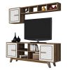 Το ΗΜ9513.03 είναι μια μοντέρνα και λειτουργική σύνθεση τηλεόρασης σε ΚΑΡΥΔΙ-ΛΕΥΚΟ χρώμα, που θα ομορφύνει το σαλόνι σας! Αποτελείται από το κυρίως έπιπλο και από ένα ντουλάπι τοίχου με ΛΕΥΚΗ πόρτα και όμορφα ραφάκια. Το κυρίως έπιπλο είναι μακρύ και διαθέτει δυο ντουλάπια δεξιά-αριστερά με όμορφο σχέδιο στις ΛΕΥΚΕΣ πόρτες και χερούλια από το ίδιο υλικό. Στην μέση υπάρχει ανοιχτός χώρος τοποθέτησης αντικειμένων χωρισμένος σε 4 μέρη. Η σύνθεση ολοκληρώνεται με ένα ντουλάπι τοίχου και ένα μακρόστενο ράφι χωρισμένο επίσης σε 4 μέρη. Μια σύνθεση που αλλάξει και θα αναβαθμίσει την εικόνα του σαλονιού σας!