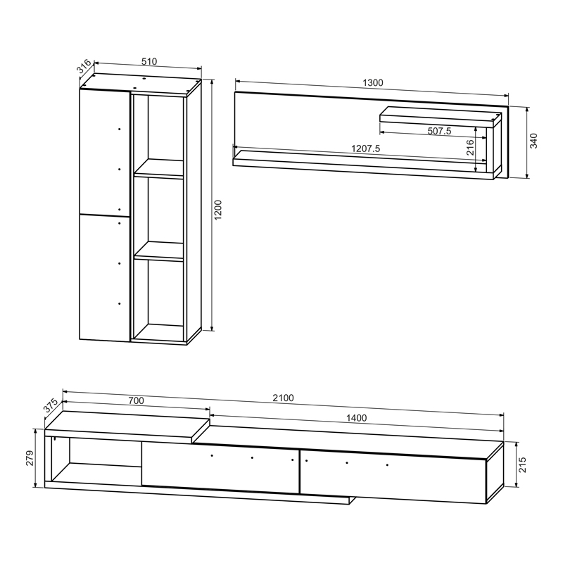 Σύνθετο σαλονιού Calvados pakoworld σε oak-ανθρακί απόχρωση