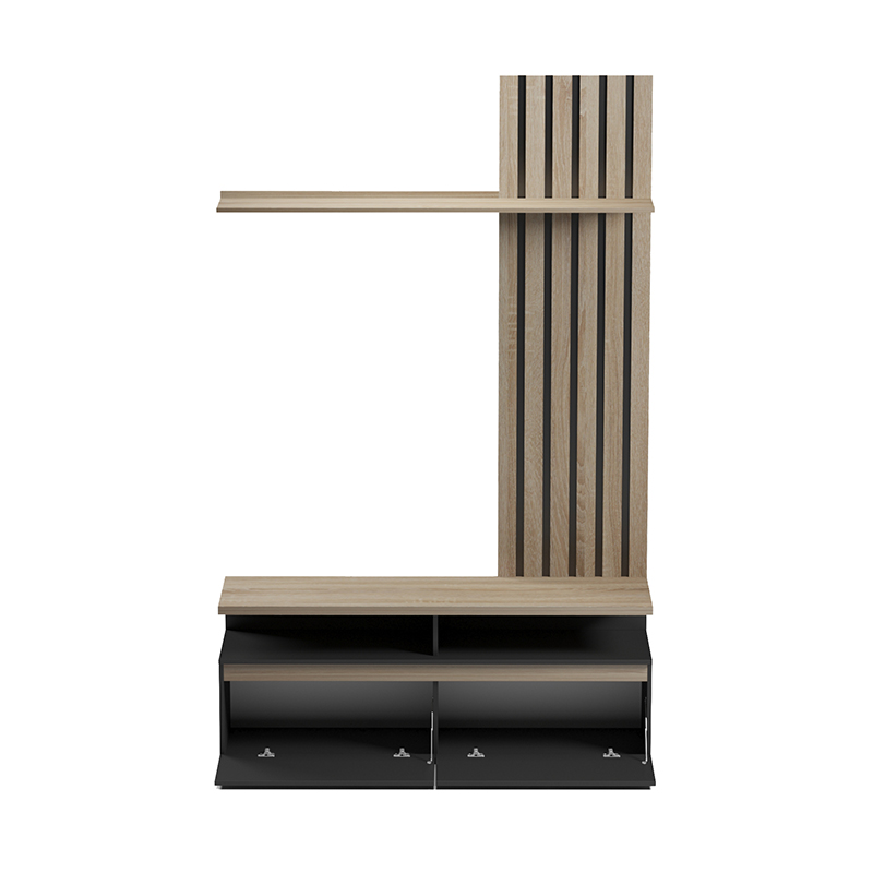 Σύνθετο σαλονιού Perlento pakoworld σε μαύρο με sonoma απόχρωση 140x41x219.5εκ