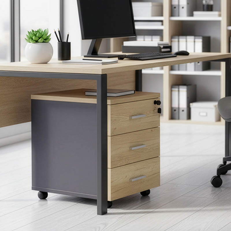 Τροχήλατη συρταριέρα Lotus στον εντυπωσιακό χρωματισμό του φυσικό με ανθρακί. Κατασκευασμένη από υλικά υψηλών προδιαγραφών και σύμφωνα με τις εργονομικές απαιτήσεις του σήμερα.