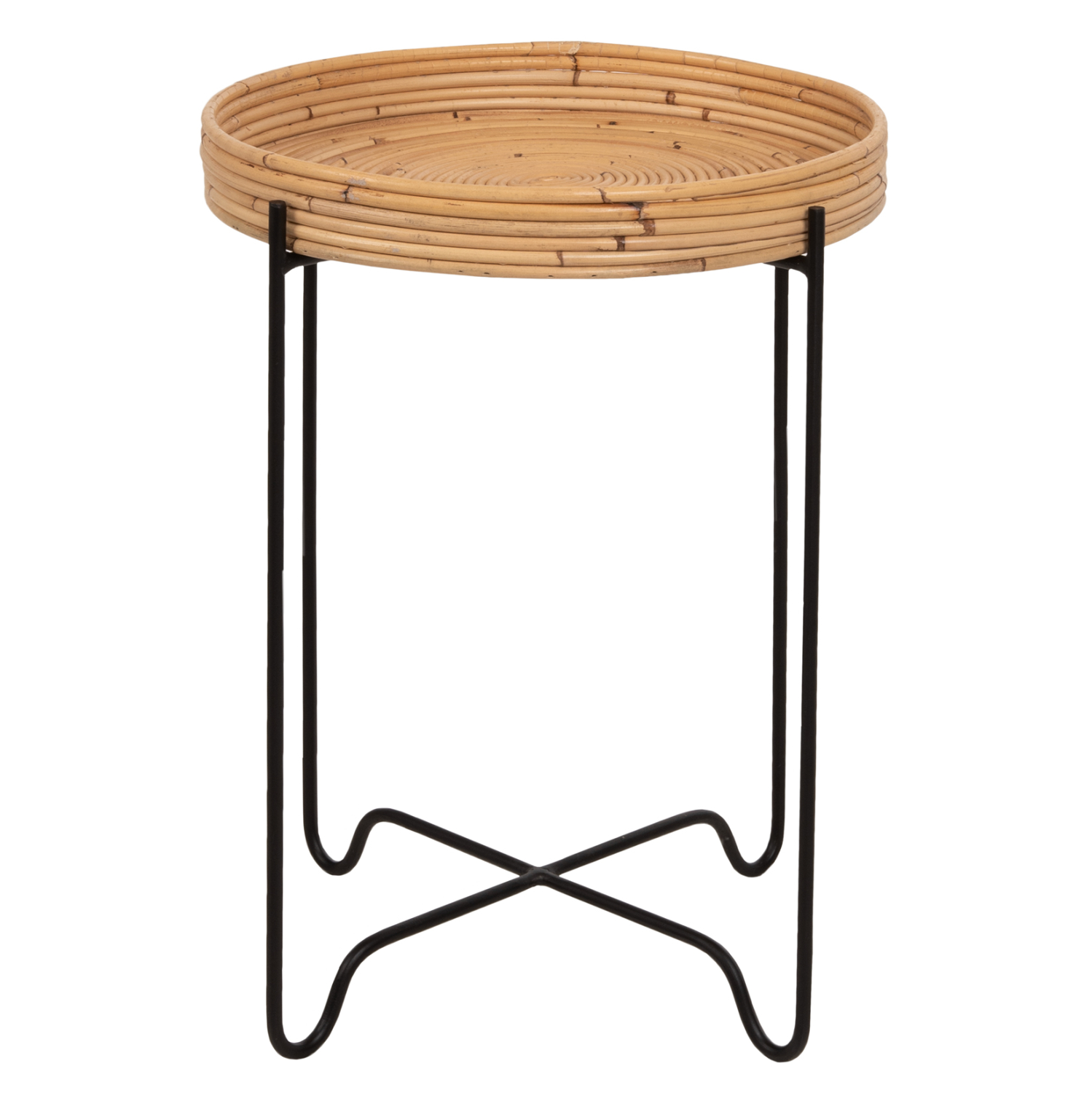 Το τραπεζάκι FLY θα σας ενθουσιάσει με το στυλ και την πρακτικότητά του. Πρόκειται για ένα σχετικά ψηλό στρογγυλό τραπεζάκι με ιδιαίτερο χαρακτηριστικό ότι η επιφάνεια αποτελείται από φυσικό RATTAN και στηρίζεται σε μια βάση με χιαστί διάταξη. Η βάση είναι μεταλλική σε ΜΑΥΡΟ χρώμα. Ιδανική επιλογή για πληθώρα χρήσεων με απαράμιλλο στυλ!