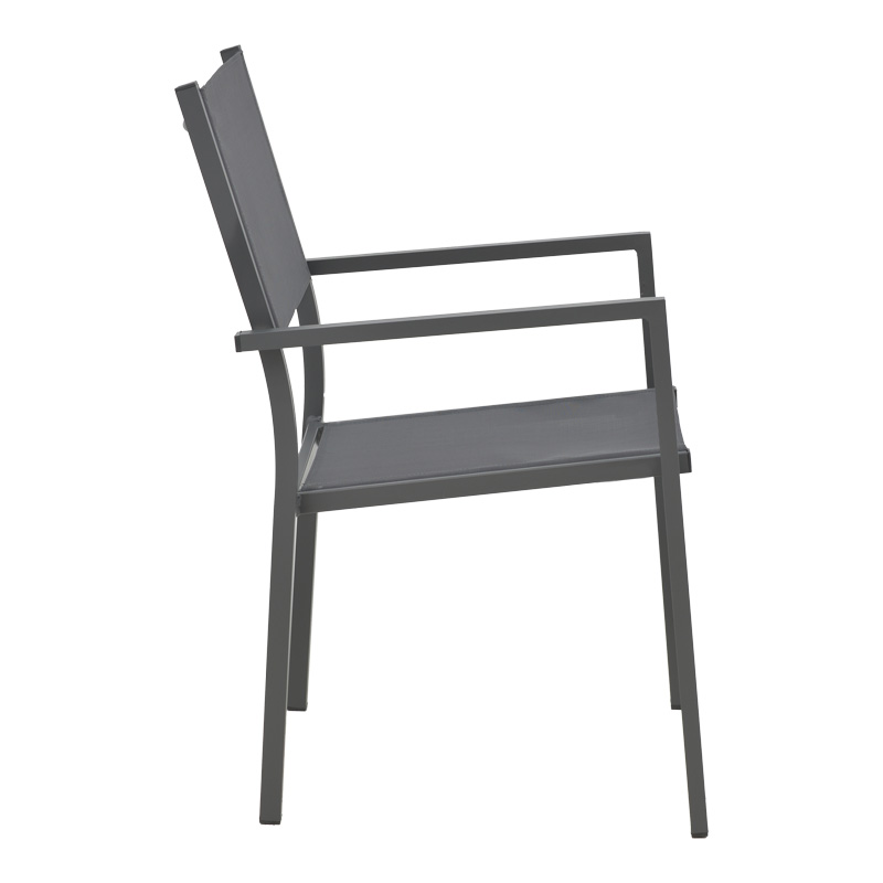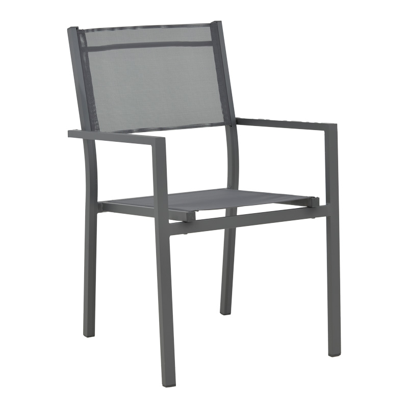 •  Επένδυση υφάσματος textinene. Το textilene είναι ύφασμα μεγάλης αντοχής στην ηλιακή ακτινοβολία UV και την υγρασία, ενώ παράλληλα αφήνει το δέρμα να “αναπνέει” δημιουργώντας έτσι άνεση στην έδραση.