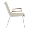 - Σταθερός σκελετός από αλουμίνιο και ύφασμα textilene. Το textilene είναι ύφασμα μεγάλης αντοχής στην ηλιακή ακτινοβολία και την υγρασία ενώ παράλληλα αφήνει το δέρμα να “αναπνέει” δημιουργώντας έτσι άνεση στο κάθισμα. To αλουμίνιο παρέχει ανθεκτικότητα και ελαφριά κατασκευή, καθιστώντας την πολυθρόνα εύκολη στη μετακίνηση και την αποθήκευση. Eίναι επίσης ανθεκτικό στη διάβρωση και δεν συντηρεί σκουριά, καθιστώντας την κατάλληλη για χρήση σε εξωτερικούς χώρους.