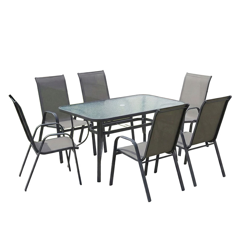 Tραπεζαρία Calan-Ensure pakoworld σετ 7τεμ σκούρο ανθρακί μέταλλο και textilene ανθρακί 140x80x70εκ