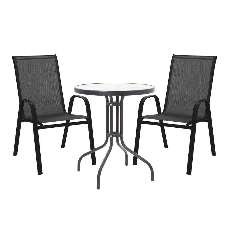 Τραπεζαρία Calan-Watson σετ 3τεμ pakoworld μέταλλο μαύρο-textilene μαύρο Φ60×70εκ