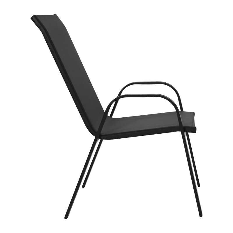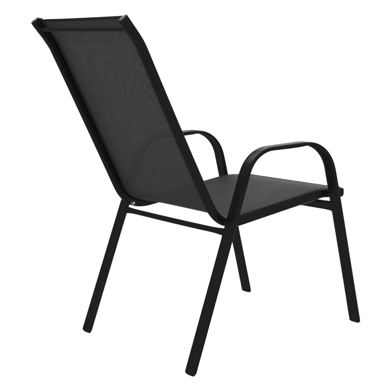 Σταθερός σκελετός από μέταλλο με αντοχή στην καταπόνηση και στη φθορά. Κυρίως σώμα καρέκλας από εξαιρετικής ποιότητας textilene. Το textilene είναι ύφασμα μεγάλης αντοχής στην ηλιακή ακτινοβολία και την υγρασία ενώ παράλληλα αφήνει το δέρμα να “αναπνέει” δημιουργώντας έτσι άνεση στο κάθισμα.