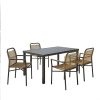 Τραπεζαρία Clutch -Kliton A σετ 5τεμ pakoworld ανθρακί αλουμίνιο και pe rattan σε φυσική απόχρωση150x80x74εκ