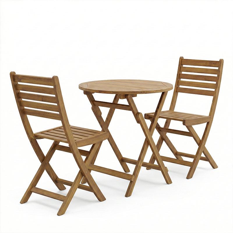 Τραπεζαρία Fatel-Carpuva pakoworld σετ 3τεμ πτυσσόμενο φυσικό μασίφ ξύλο ακακίας Φ70×74εκ