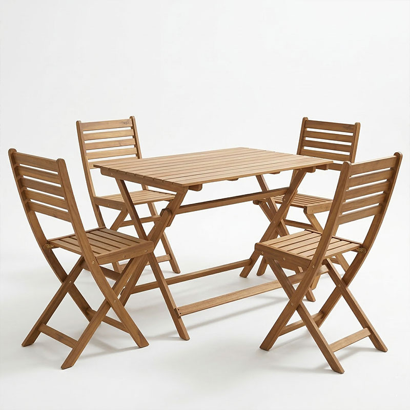 αυτό ιδανικό για χρήση σε εξωτερικούς χώρους, όπως κήπους, βεράντες ή αυλές. Τα λεία φυσικά ξύλινα φινιρίσματα του αναδεικνύουν τις φυσικές γραμμές και την υφή του ξύλου, προσφέροντας μια αίσθηση αυθεντικότητας και ευχάριστης απλότητας. - Πτυσσόμενο: Το τραπέζι αναδιπλώνει και κλείνει με μία κίνηση προσφέροντας έτσι ευκολία στη μεταφορά και την αποθήκευση.