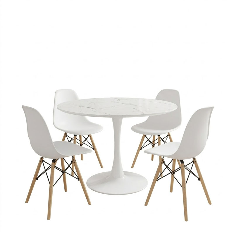Τραπεζαρία Julita-Balou pakoworld σετ 5τεμ pp-mdf σε λευκό μαρμάρου απόχρωση Φ120×73εκ