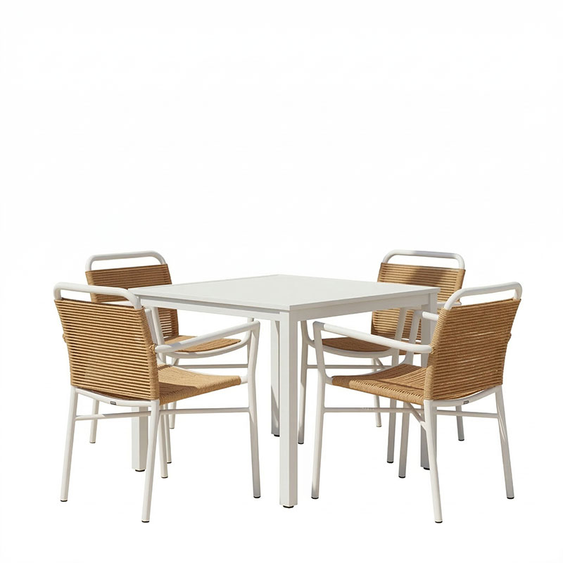 Τραπεζαρία Kliton – Clutch σετ 5τεμ pakoworld αλουμίνιο σε λευκή απόχρωση 80x80x74εκ