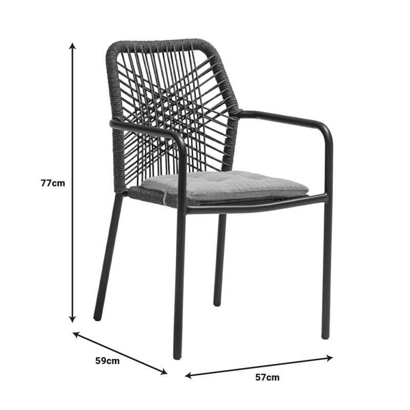 - Χρώμα: αλουμίνιο ανθρακί-σχοινί ανθρακί-μαξιλάρι γκρι.