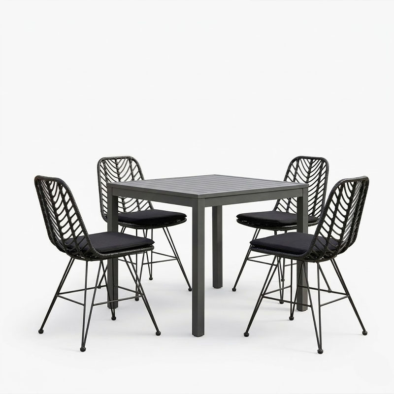 Τραπεζαρία Kliton-Naoki σετ 5τεμ pakoworld ανθρακί αλουμίνιο και μέταλλο σε μαύρη απόχρωση 80x80x74εκ