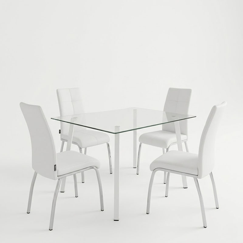 Τραπεζαρία με Καρέκλες Ariadne Λευκό και Τραπέζι Titta γυαλί 120x70x75εκ Σετ 5τεμ