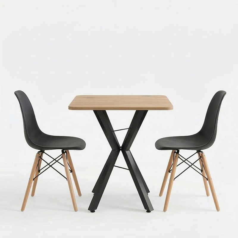 Τραπεζαρία με Καρέκλες Julita μαύρο και Τραπέζι Prestone oak 70x70x75εκ Σετ 3τεμ