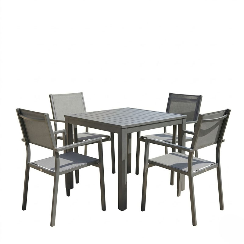Τραπεζαρία Moly – Kliton Ι σετ 5τεμ pakoworld ανθρακί αλουμίνιο και textilene σε ανθρακί απόχρωση 80x80x74εκ