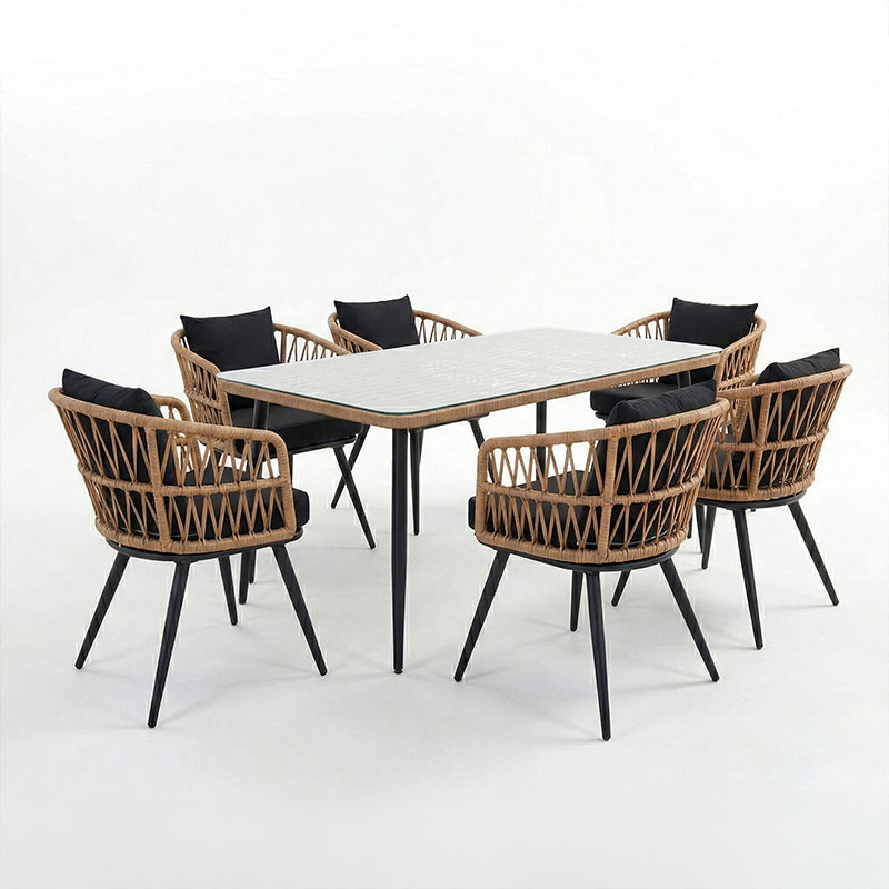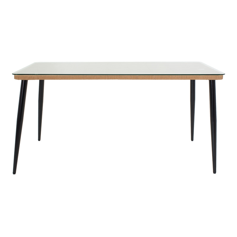 Τραπεζαρία Naoki σετ 7 τεμ pakoworld μέταλλο μαύρο-pe φυσικό-γυαλί 160x90x78εκ
