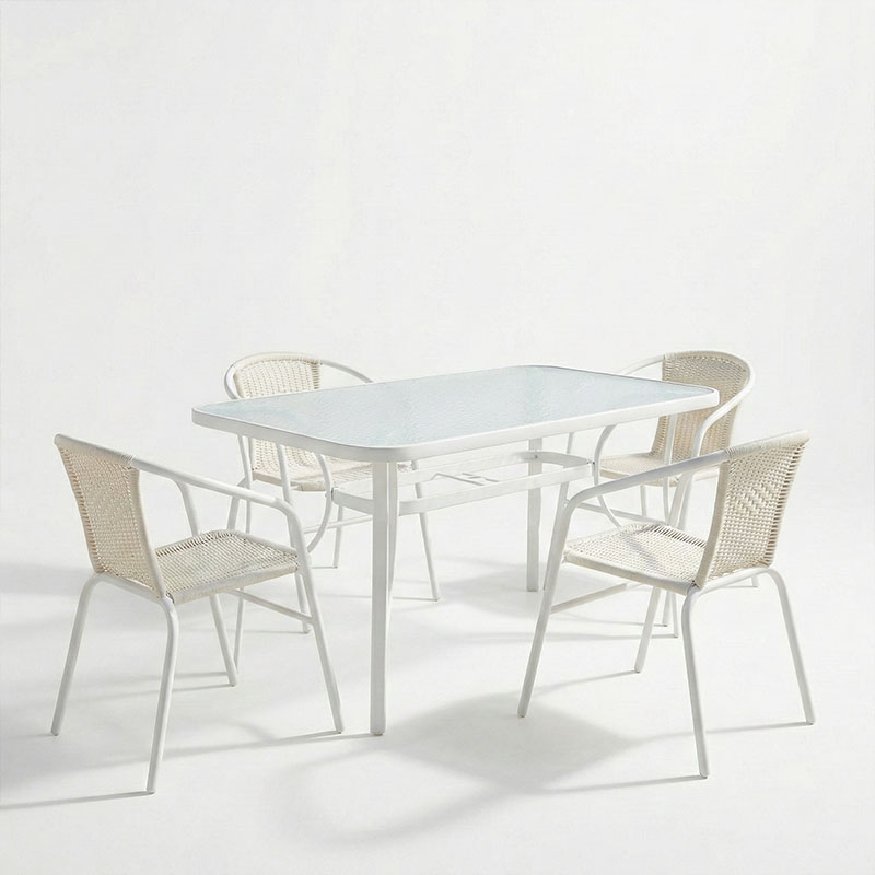 Τραπεζαρία Obbi-Ensure pakoworld 5τεμ μέταλλο-γυαλί σε λευκή απόχρωση 120x70x70εκ