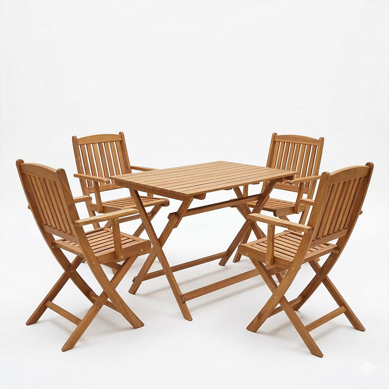 Τραπεζαρία Recofly-Jaybo pakoworld σετ 5τεμ πτυσσόμενο φυσικό μασίφ ξύλο ακακίας 100x65x72εκ