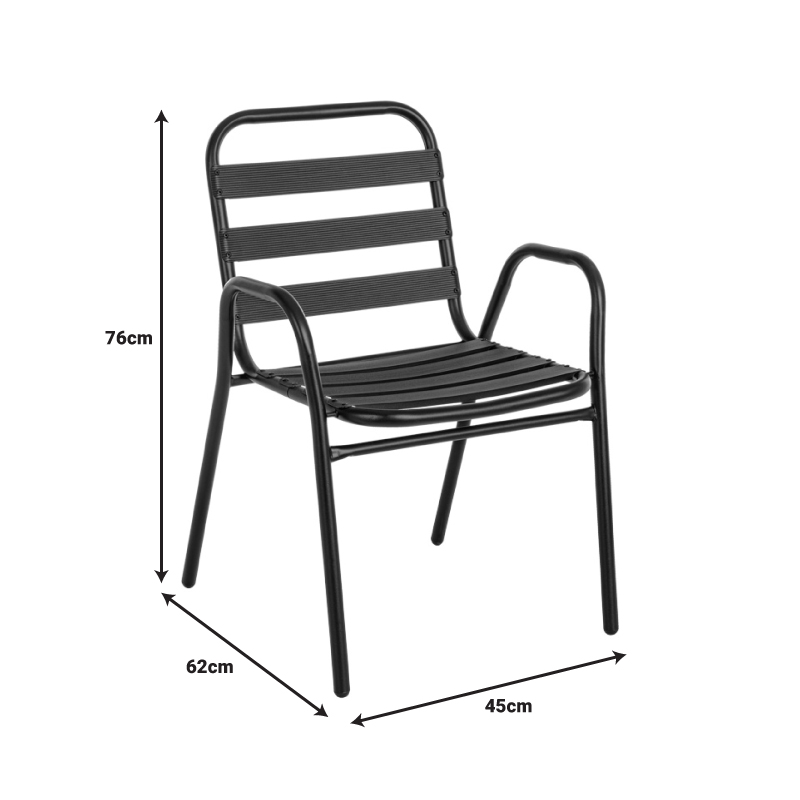 • Σταθερός σκελετός από μέταλλο εξαιρετικής ποιότητας με αντοχή σε φθορά και χρόνο, ενώ τα κομμάτια έδρας και πλάτης είναι κατασκευασμένα από φέτες αλουμινίου. Το μέταλλο παρέχει ανθεκτικότητα και σταθερότητα, ενώ οι φέτες αλουμινίου προσθέτουν ελαφρότητα και μια μοντέρνα αίσθηση στον σχεδιασμό. Η πολυθρόνα αυτή είναι ιδανική για χρήση σε εξωτερικούς χώρους, καθώς η ανθεκτικότητα στις καιρικές συνθήκες του αλουμινίου την καθιστά ανθεκτική σε έκθεση στον ήλιο και την υγρασία.