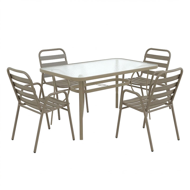 Τραπεζαρία Sussie-Ensure pakoworld 5τεμ μέταλλο-γυαλί σε σαμπανιζέ απόχρωση 140x80x70εκ