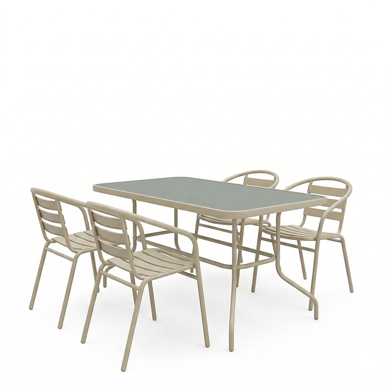Τραπεζαρία Tade-Valor pakoworld 5τεμ μέταλλο-γυαλί σε σαμπανιζέ απόχρωση 110x60x70εκ