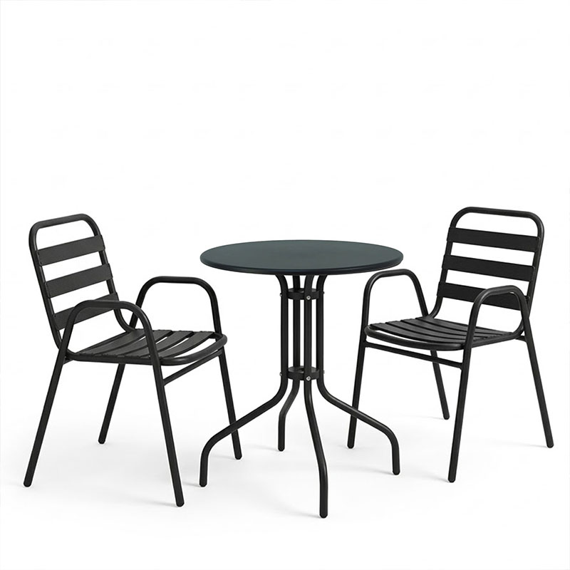 Τραπεζαρία Vergo-Sussie pakoworld 3τεμ μαύρο μέταλλο Φ60×70εκ