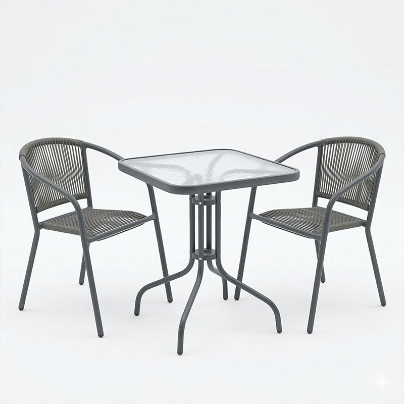 Τραπεζαρία Watson-Lindaria pakoworld 3τεμ μέταλλο ανθρακί-γυαλί 70x70x70εκ