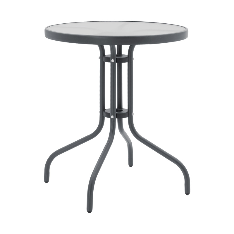 Tραπεζαρία Watson-Lindaria pakoworld σετ 3τεμ μέταλλο ανθρακί-γυαλί- pe rattan σε φυσική απόχρωση Φ60×70εκ