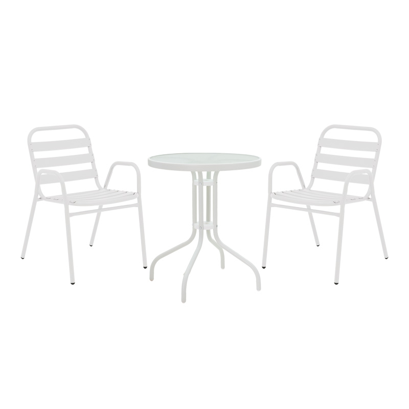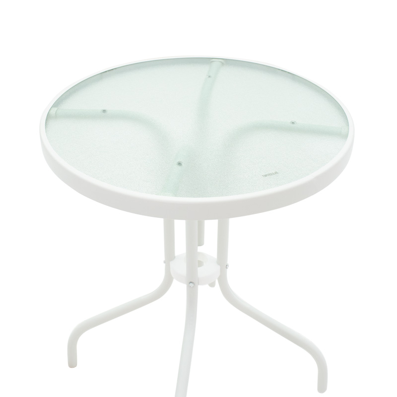 Τραπεζαρία Watson-Sussie pakoworld σετ 3τεμ μέταλλο λευκό-γυαλί Φ60×70εκ
