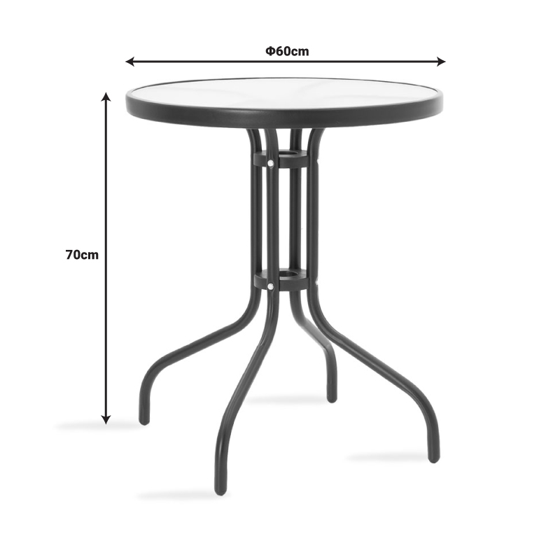Τραπεζαρία Watson-Sussie pakoworld σετ 3τεμ μέταλλο μαύρο-γυαλί Φ60×70εκ